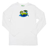 Our Boys White Long Sleeve Sun Protective Logo T-Shirt is a wardrobe essential that can be worn by itself or layered. This classic design is lightweight and cool for year-round comfort indoors and outdoors. Exclusive bamboo blend provides UPF 50+ sun protection that won’t wash out.