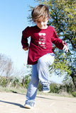 Boys Crimson Red Long Sleeve Sun Protective Sunglasses Shirt is a wardrobe essential that can be worn by itself or layered. Lightweight and cool for year-round comfort indoors and outdoors. Exclusive bamboo blend provides UPF 50+ sun protection that won’t wash out.