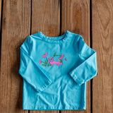 Infant/Toddler Brilliant Cerulean Blue Chameleon in the Garden Long Sleeve Sun Protective T-Shirt is a wardrobe essential that can be worn by itself or layered. Lightweight and cool for year-round comfort indoors and outdoors. Exclusive bamboo blend provides UPF 50+ sun protection that won’t wash out.