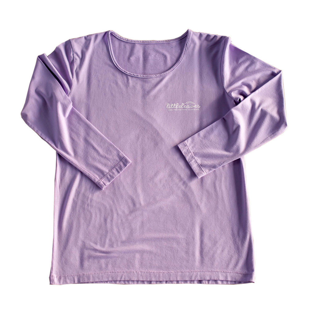 Womens Mulberry Purple Gray Sun Protective Shirt is a wardrobe essential that can be worn by itself or layered. This classic design is lightweight and cool for year-round comfort indoors and outdoors. Exclusive bamboo blend provides UPF 50+ sun protection that won’t wash out.