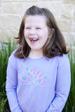 Girls Mulberry Purple Gray Spring Tree Long Sleeve Sun Protective T-Shirt is a wardrobe essential that can be worn by itself or layered. Lightweight and cool for year-round comfort indoors and outdoors. Exclusive bamboo blend provides UPF 50+ sun protection that won’t wash out.