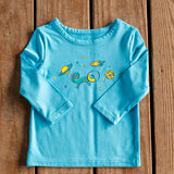 Infant/Toddler Brilliant Cerulean Blue Chameleon in Space Long Sleeve Sun Protective T-Shirt is a wardrobe essential that can be worn by itself or layered. Lightweight and cool for year-round comfort indoors and outdoors. Exclusive bamboo blend provides UPF 50+ sun protection that won’t wash out.